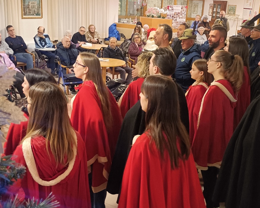 Domenica 14 dicembre 2025, nel tardo pomeriggio, ingresso trionfale per il folto gruppo della ProLoco Albettone. In veste di Babbo Natale e con alcuni cappelli da alpino, una trentina di volontari hanno portato gli auguri di Buone Feste alla residenza.
